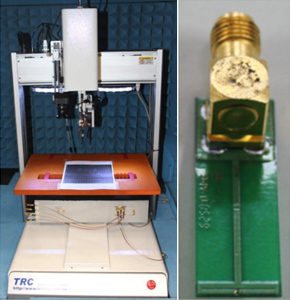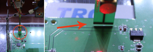 The above diagrams show the overall looks of the TRC’s PNS, followed by a closer look at the VCCI magnetic probe. The bottom diagram is a close up of the calibration board with the probe. |