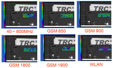The test setup for PNS with VCCI kit module is shown above. The distance between the edge of the magnetic probe and DUT is 1mm, and the examples for the test results are shown in the figure at the right hand side. |